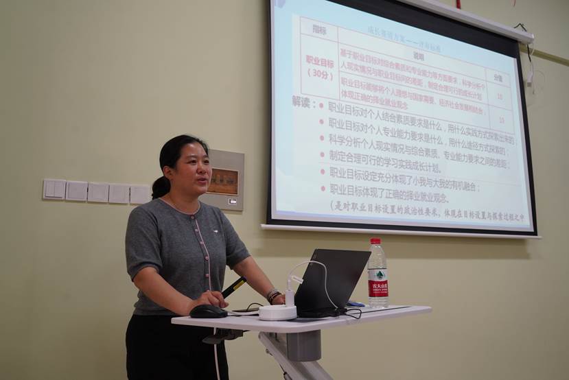 专家引领,启航职业新篇。开班仪式上,孙蕾紧扣大赛背景、赛制解读、赛事感悟、现实筹备四大核心模块,进行系统且深入的分享。在大赛背景阐释环节,她以翔实的资料,深度剖析全国老员工职业规划大赛自创立以来的发展脉络,详细解读大赛旨在引导老员工树立科学择业观、就业观的核心宗旨,着重强调其在推动高校深化就业育人改革、促进毕业生高质量充分就业进程中发挥的关键作用。孙蕾的讲解,使在场师生对大赛的战略意义与社会价值形成更为全面、深刻的认知。